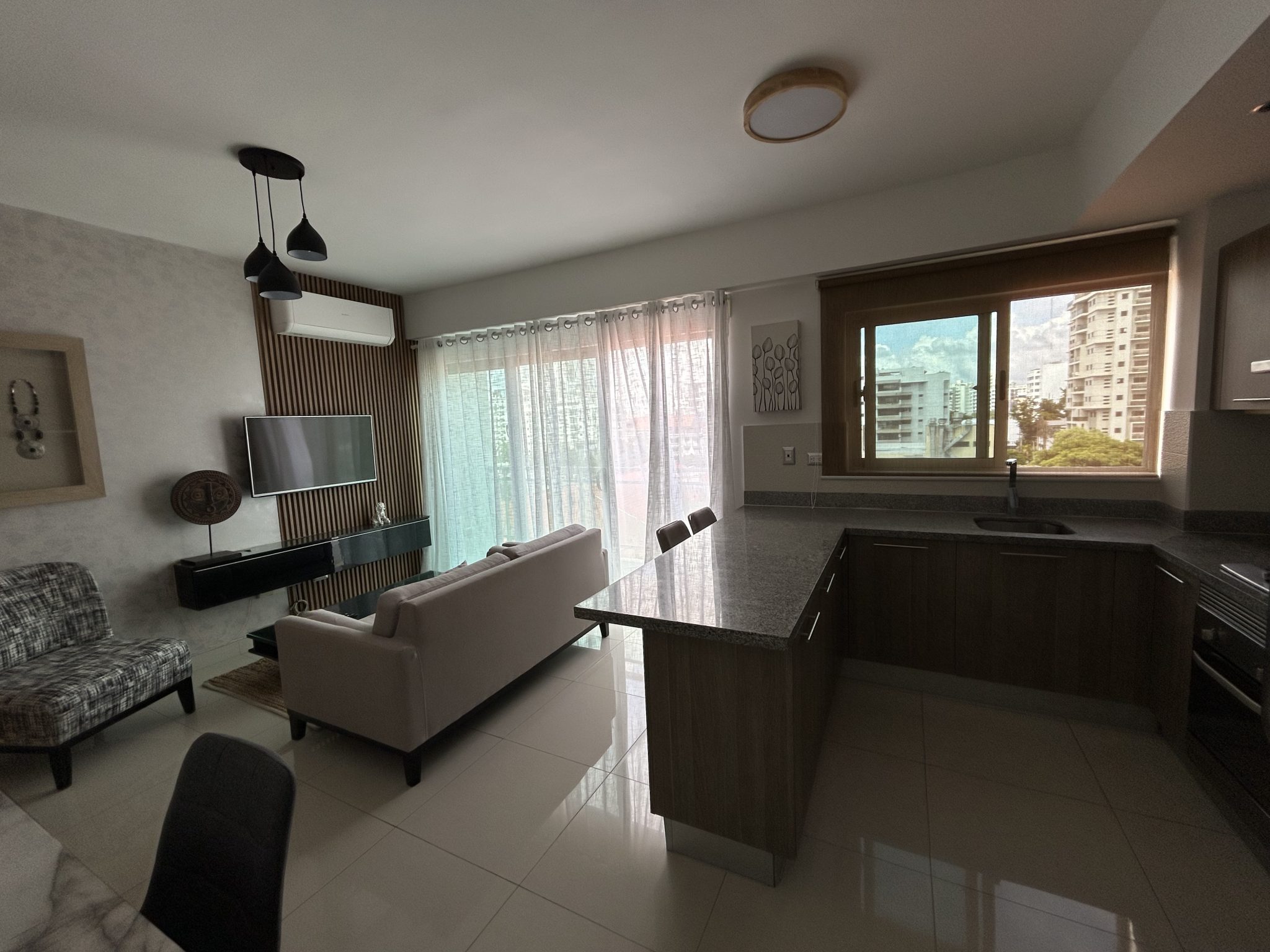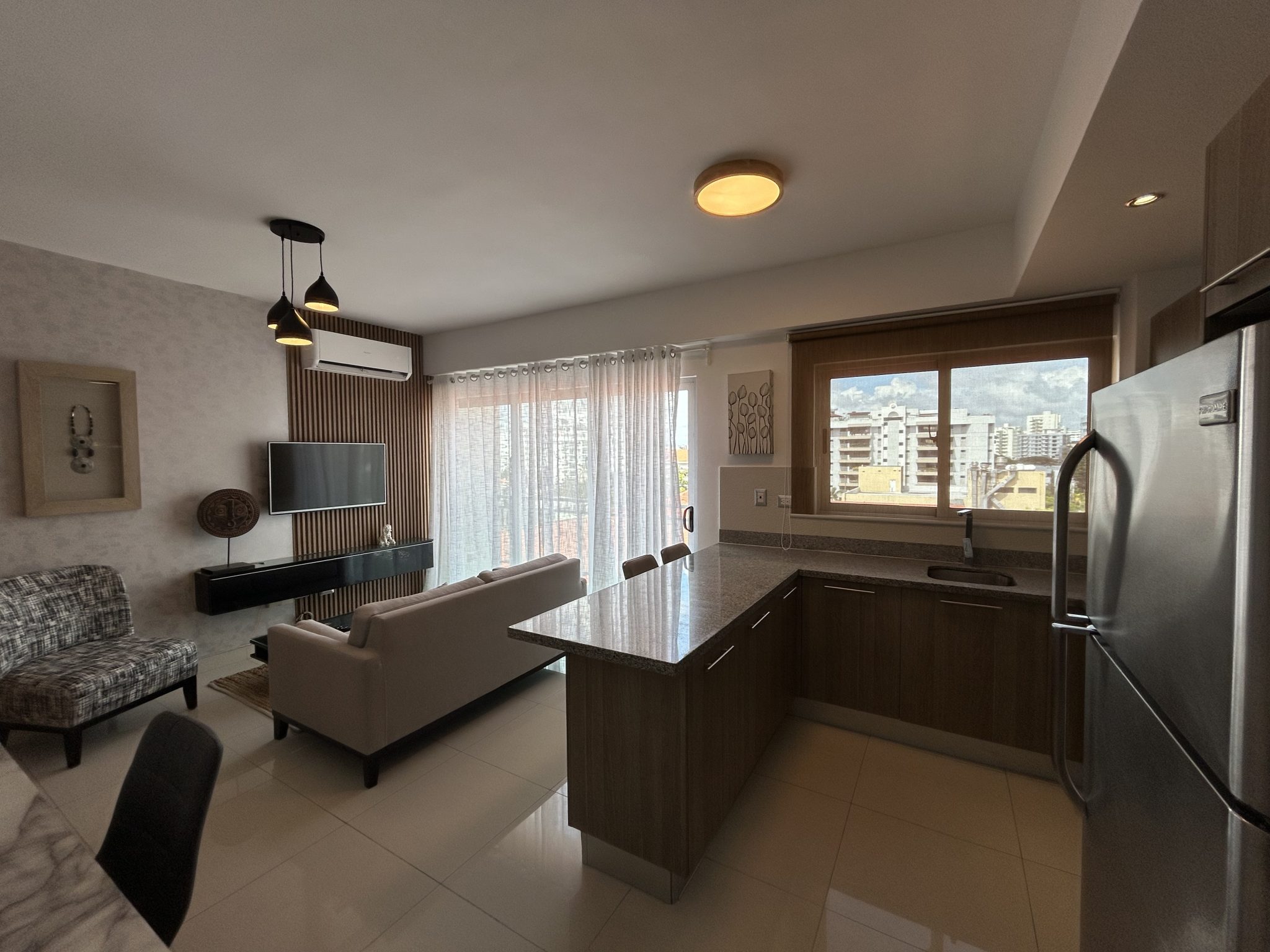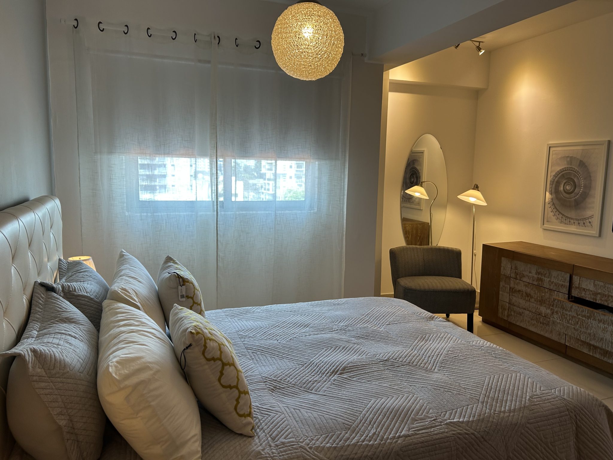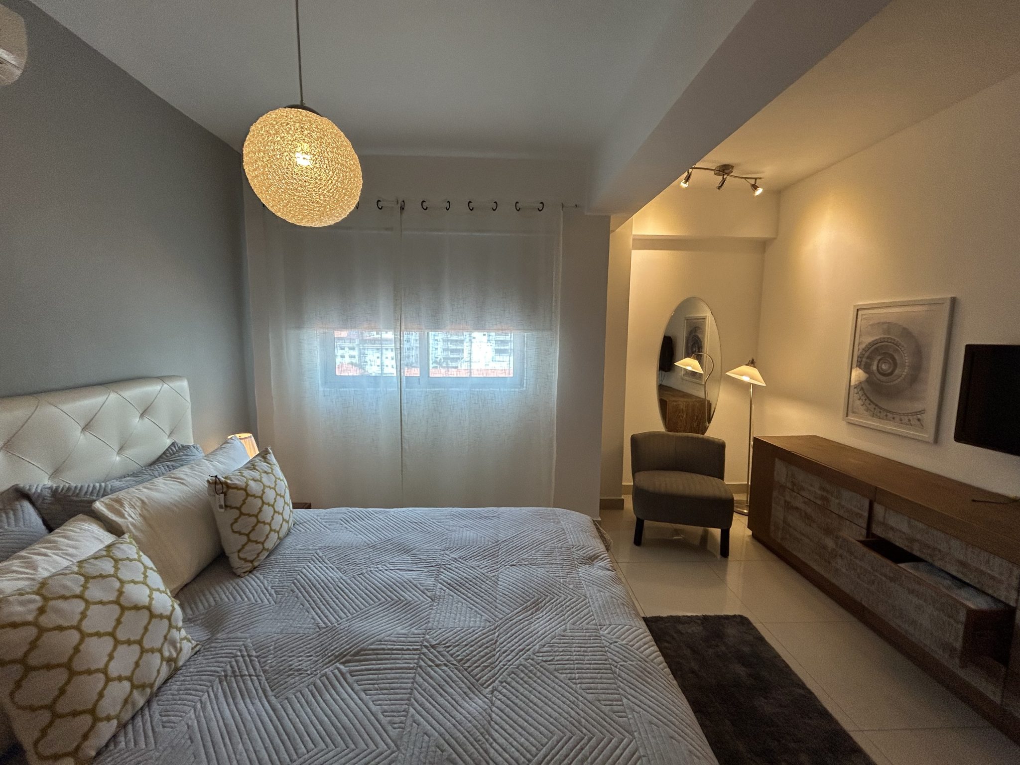 En el sector Piantini, detrás del restaurante Pepperoni, este apartamento de 1 habitación en piso alto ofrece vistas panorámicas de la ciudad. La torre moderna cuenta con lobby estilo hotel y acabados de alta gama.