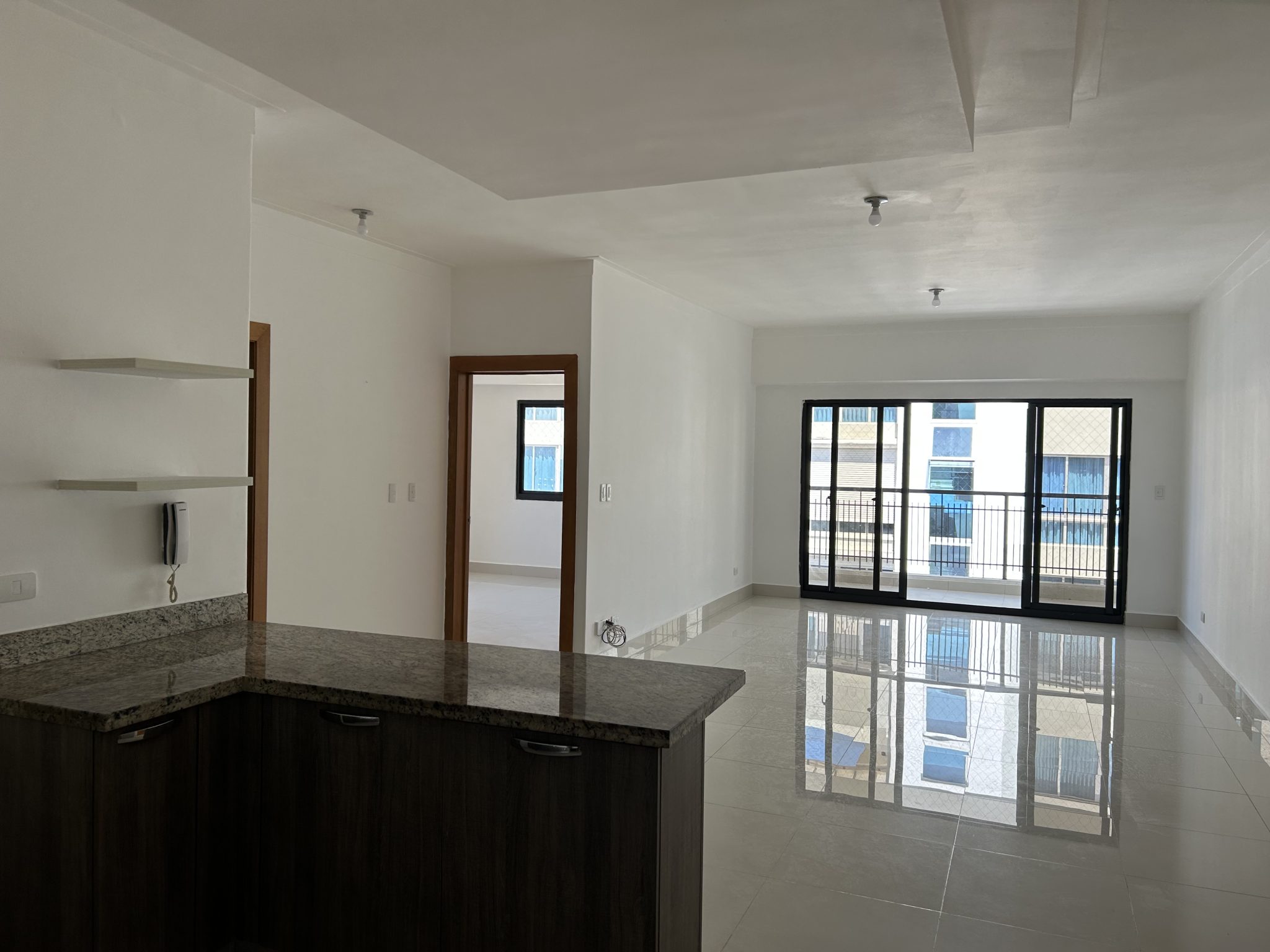 Interiores: Sala luminosa | Cocina equipada | 3 habitaciones | 4 baños | Balcón | 2 parqueos techados.