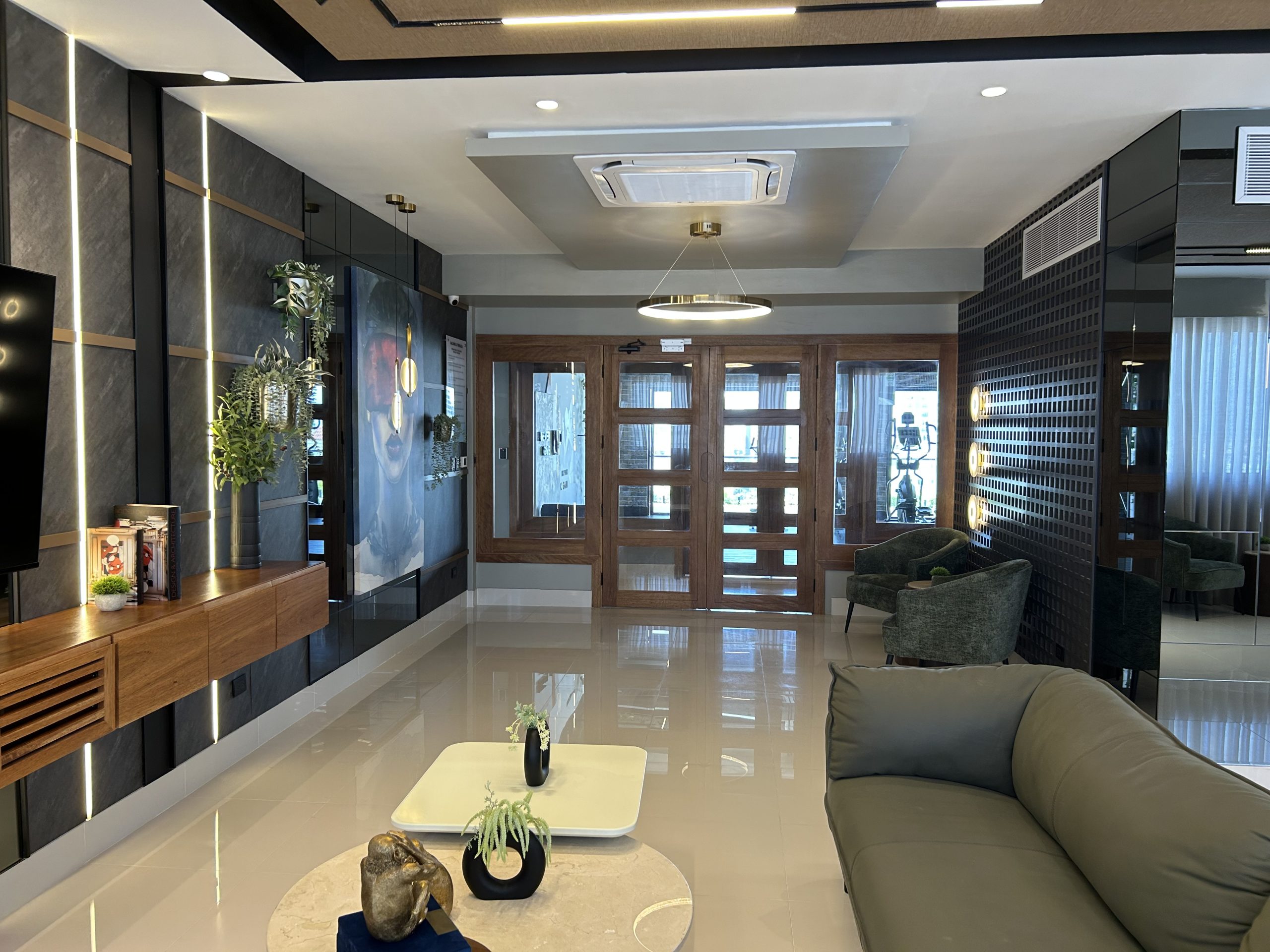 Ubicación: Ubicado en el exclusivo sector de Serralles, este apartamento sin amueblar de 2 habitaciones ofrece vistas panorámicas impresionantes de toda la ciudad. La torre cuenta con un lobby lujoso tipo condo‑hotel, con diseño contemporáneo, iluminación tenue y materiales de alta gama que crean una atmósfera sofisticada y acogedora.